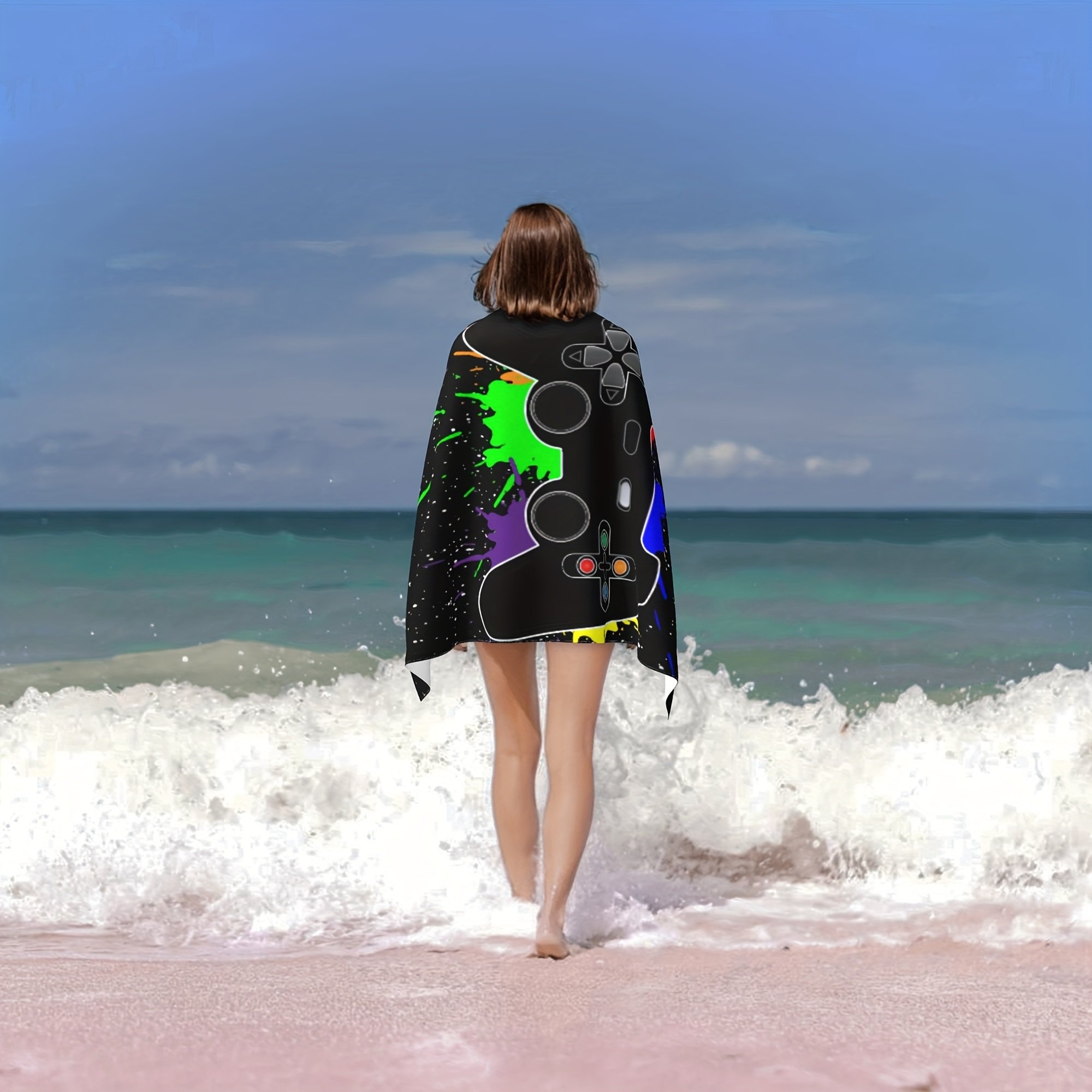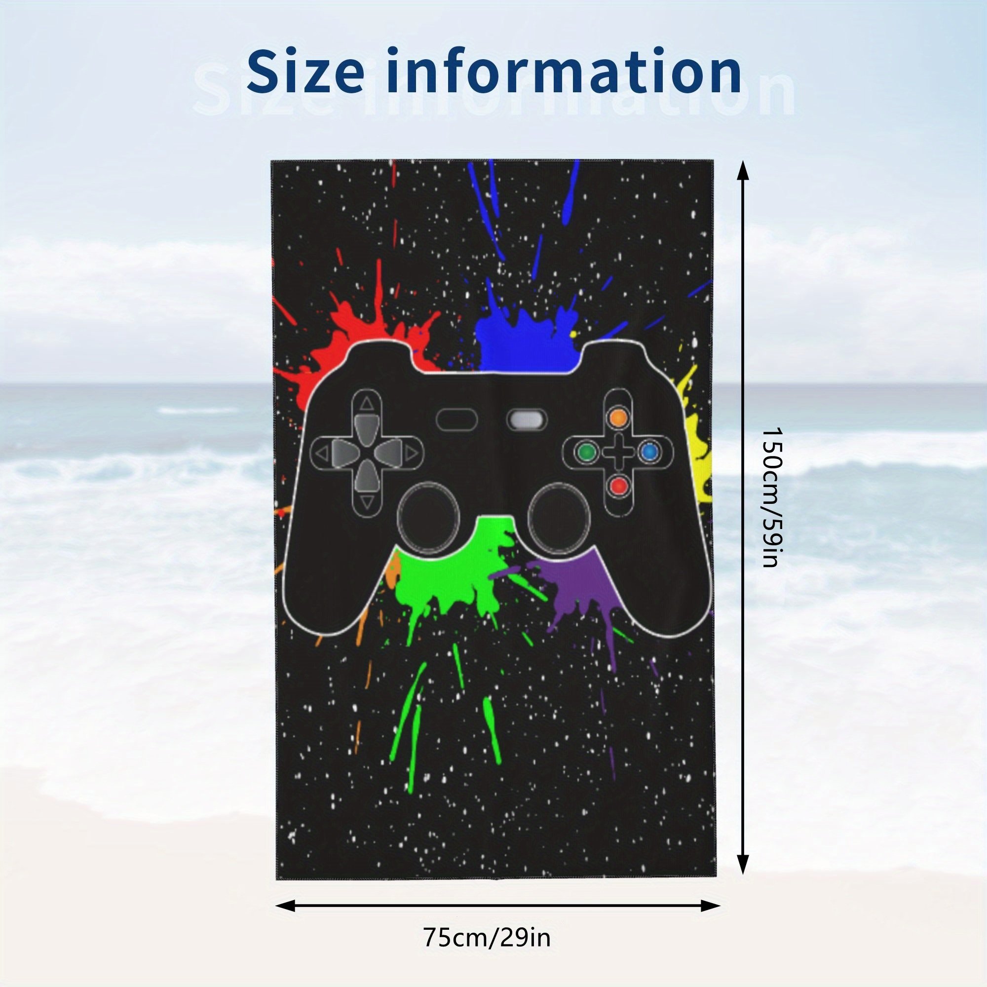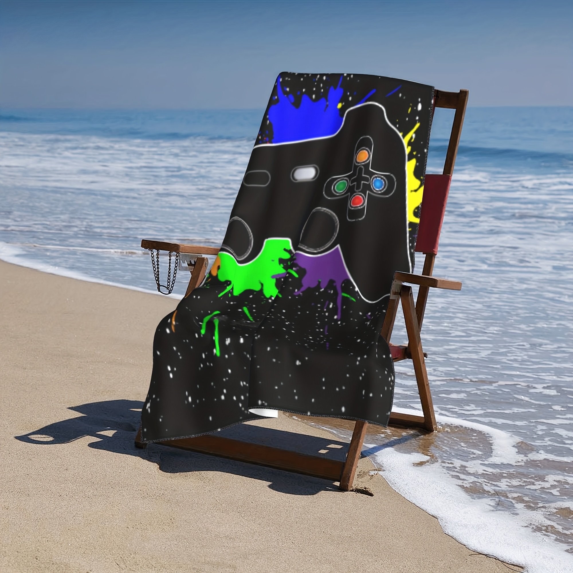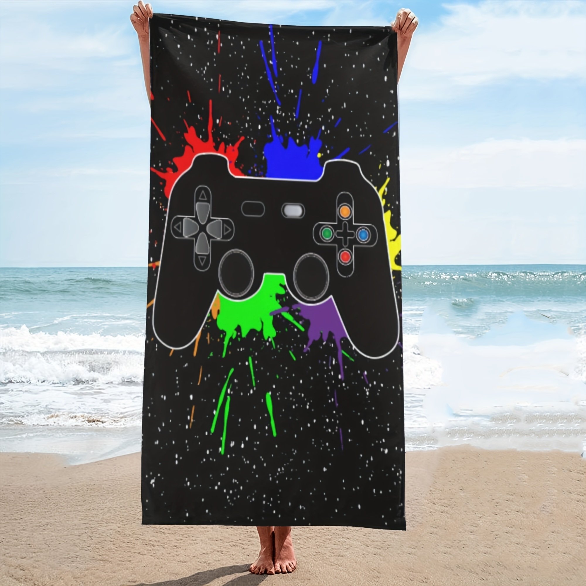 Home > 1pc Oversized Sandproof Beach Towel; Game Joystick Pattern; Fast Dry Beach Accessories; For Travel Swim Pool Party Yoga Camping 59"x29"; Bathroom Acce