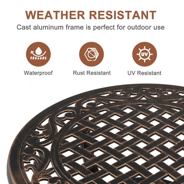 Home > Cast Aluminum Outdoor Side Table, Anti-Rust Outdoor Round End Table, Patio Coffee Bistro Table for Indoor Garden Porch Balcony, Antique Bronze